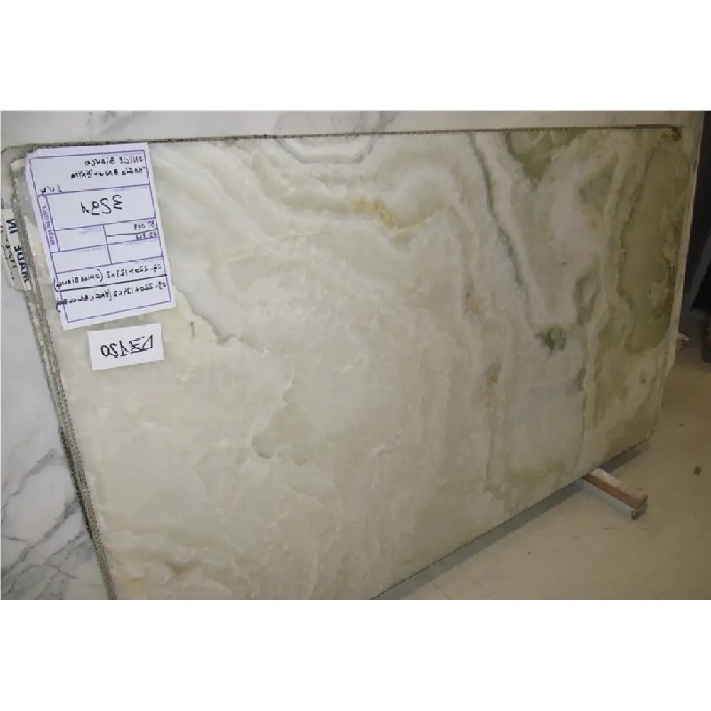 The translucency of Onice Bianco is another captivating attribute. When backlit or when light passes through the stone, it creates a soft and enchanting glow, enhancing its ethereal and delicate quality. This translucency makes Onice Bianco an excellent choice for decorative elements like backlit wall panels, countertops, and lighting fixtures.