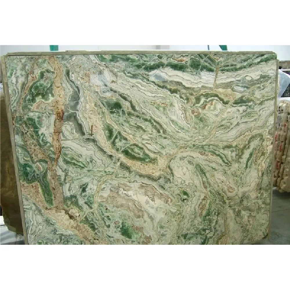 One of the most remarkable characteristics of Smeralda Onyx is its translucency. When backlit or exposed to light, the stone allows light to pass through its surface, creating a captivating effect. This property makes it an excellent choice for applications where illumination can enhance its beauty, such as backlit feature walls, countertops, or decorative pieces.